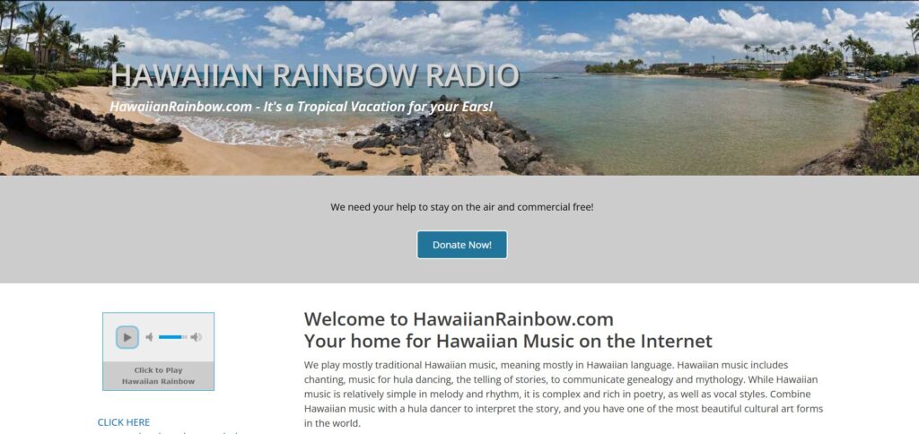 それが、ハワイアン・インターネット・ラジオ局の「Hawaiian Rainbow(ハワイアン・レインボー)」です。 パソコンやスマートフォンから無料でアクセスでき、24時間365日、心地よいハワイアン・ミュージックが途切れることなく流れています。