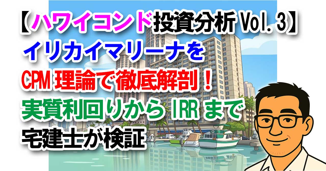 【ハワイコンド投資分析Vol.3】イリカイマリーナをCPM理論で徹底解剖!実質利回りからIRRまで宅建士が検証