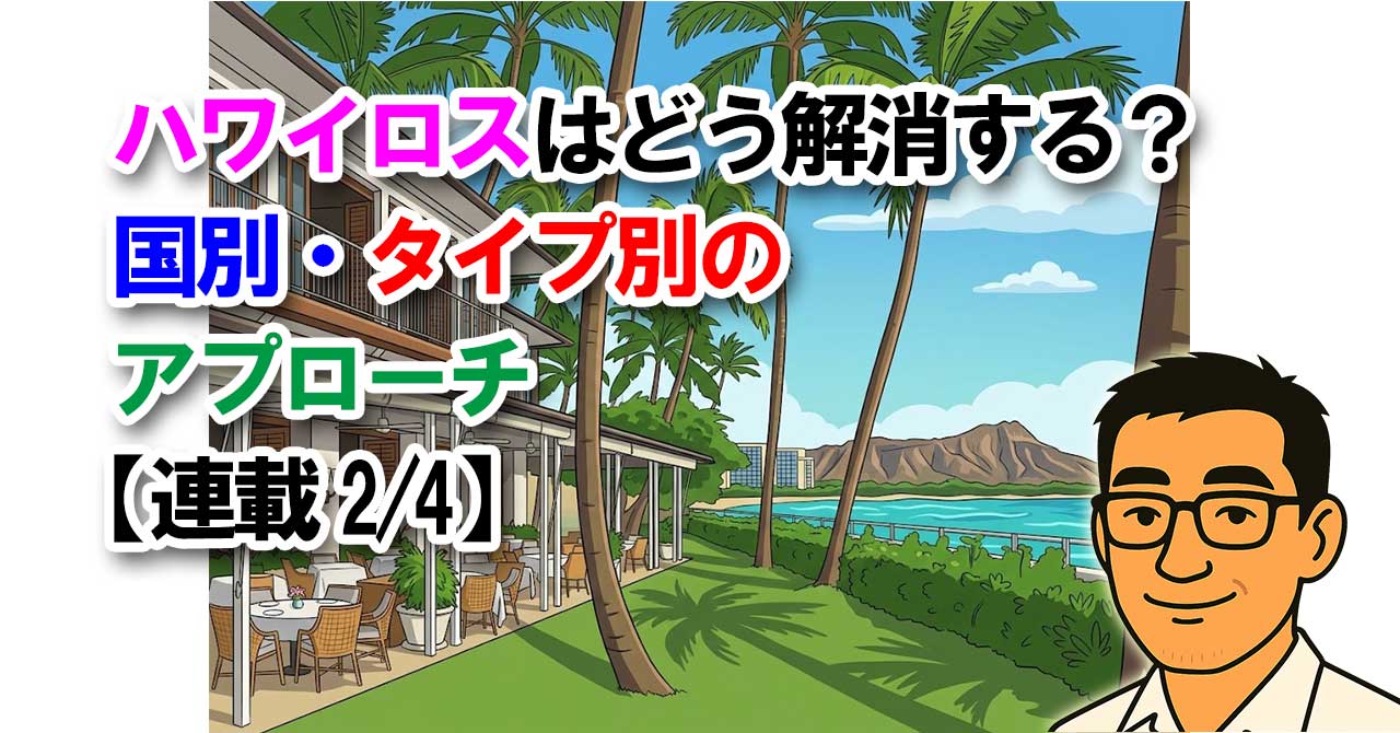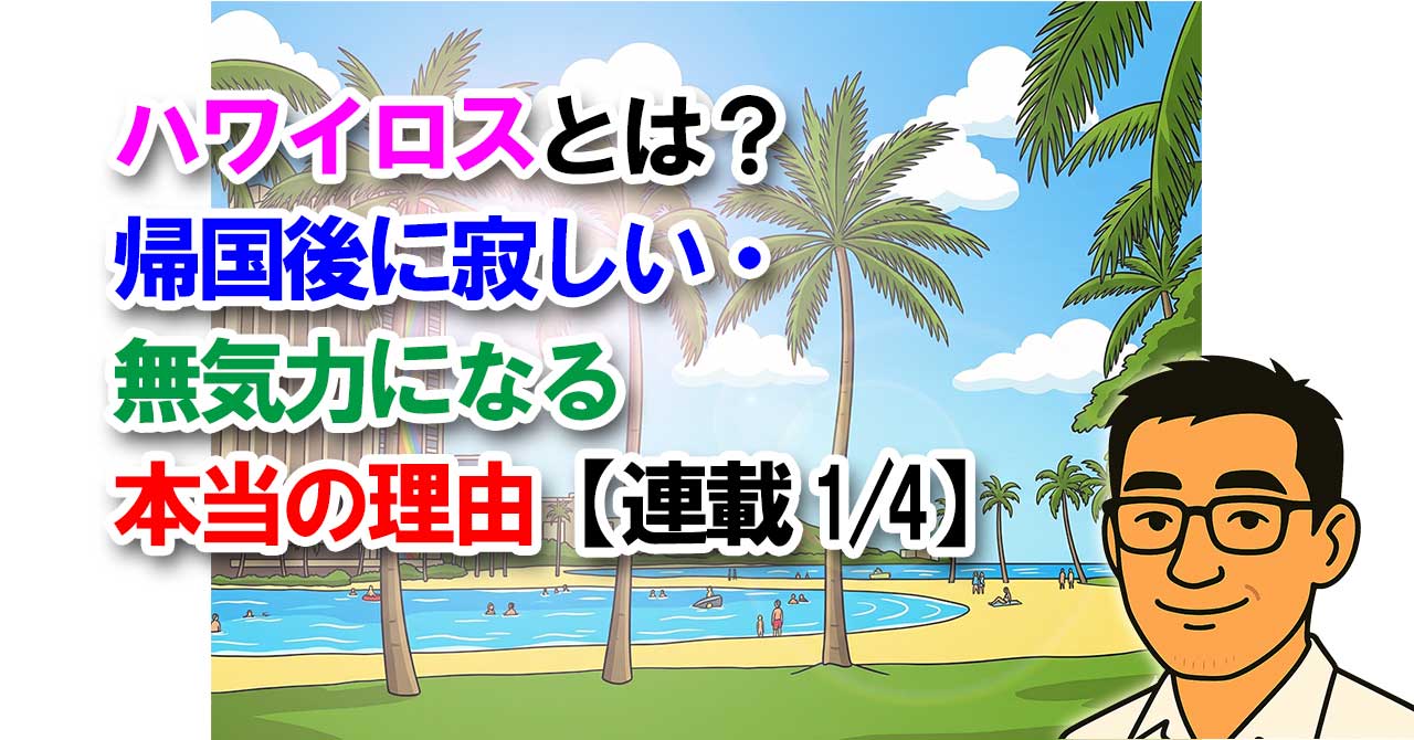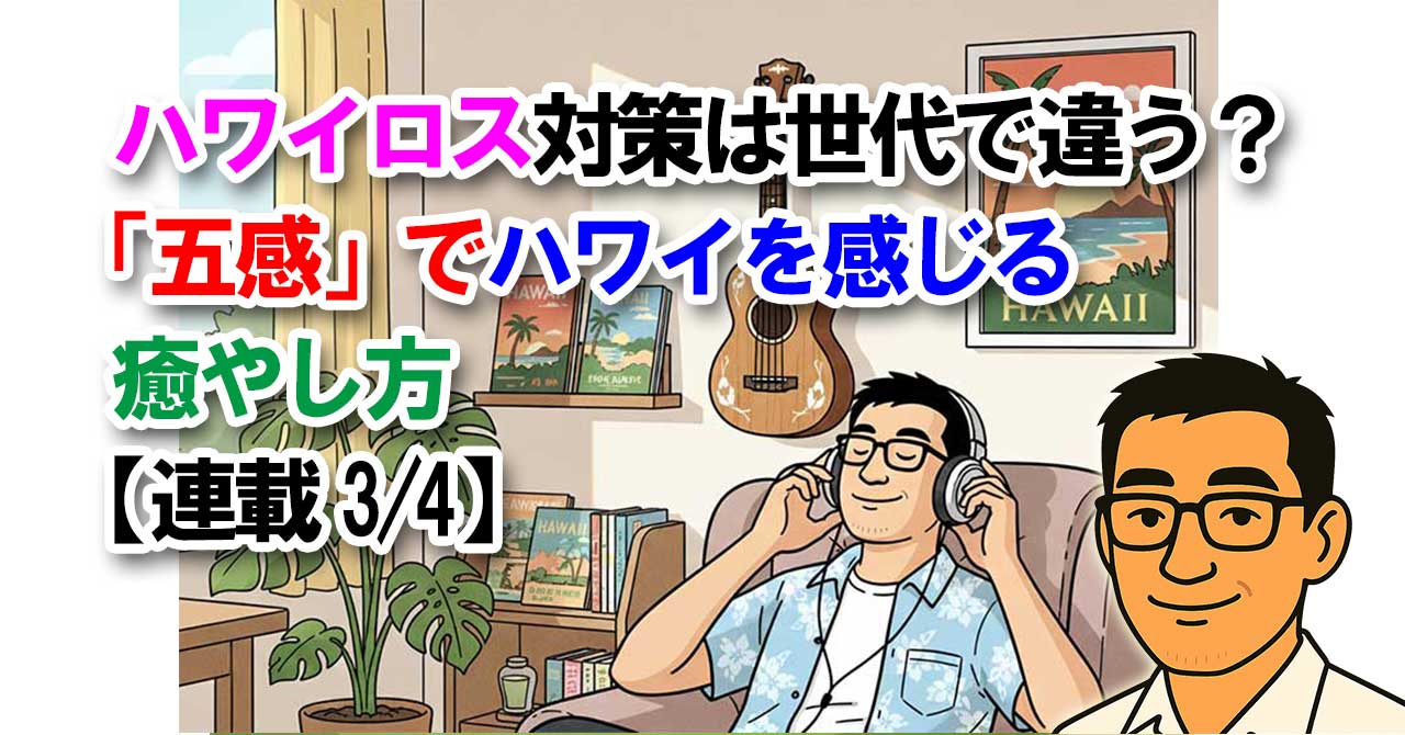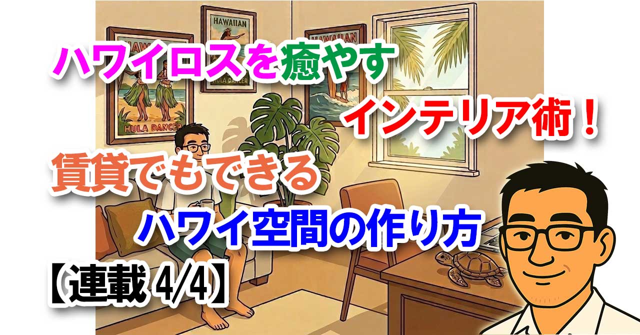 TAG ハワイ大好き ハワイロスを癒やすインテリア術!賃貸でもできるハワイ空間の作り方【連載4/4】 2026.03.10 ハワイ情報 sasshi sasshi's Hawaii blog ハワイロス対策は世代で違う?「五感」でハワイを感じる癒やし方【連載3/4】 2026.03.09 ハワイ情報 sasshi sasshi's Hawaii blog ハワイロスはどう解消する?国別・タイプ別のアプローチ【連載2/4】 2026.03.07 ハワイ情報 sasshi sasshi's Hawaii blog ハワイロスとは?帰国後に寂しい・無気力になる本当の理由【連載1/4】 2026.03.06 ハワイ情報 sasshi sasshi's Hawaii blog ハワイで暮らすように過ごす!コンドミニアム滞在を10倍快適にする日本からの持ち物リスト 2026.02.27 ハワイ情報 sasshi sasshi's Hawaii blog なぜ世界の富裕層はハワイを選ぶのか?本田健に学ぶ「人生のノイズ」を消す環境の力 2026.02.18 ハワイ情報 sasshi sasshi's Hawaii blog 【2026最新】ハワイに別荘を持つ有名人まとめ|大谷翔平の訴訟トラブルを宅建士が徹底解説 2026.02.16 ハワイ情報 sasshi sasshi's Hawaii blog