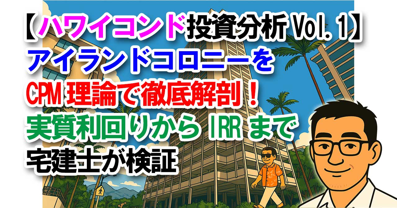 【ハワイコンド投資分析Vol.1】アイランドコロニーをCPM理論で徹底解剖!実質利回りからIRRまで宅建士が検証 2026.03.16 ハワイ不動産 sasshi sasshi's Hawaii blog