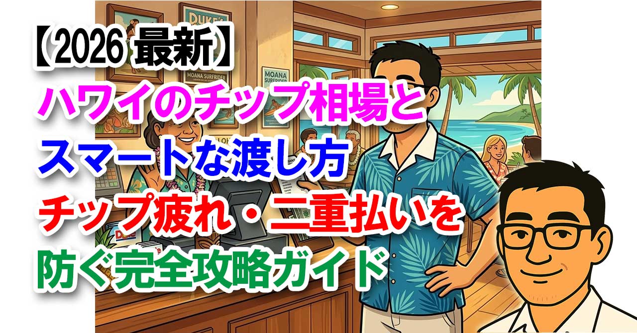 TAG ライフハック 【連載 第2回】ホテルはNG?ハワイ二拠点生活の住まい探しと滞在コストのリアル 2026.04.01 ハワイ情報 sasshi sasshi's Hawaii blog 【連載 第1回】ハワイ二拠点生活への第一歩!ESTAの罠と税金のリアル 2026.03.31 ハワイ情報 sasshi sasshi's Hawaii blog 【連載:ハワイ不動産完全攻略 第2回】旅行者必見!知らずに泊まると大惨事?ハワイ違法バケーションレンタルのリスクと自己防衛策 2026.03.24 ハワイ情報 sasshi sasshi's Hawaii blog 【2026最新】ハワイのチップ相場とスマートな渡し方|チップ疲れ・二重払いを防ぐ完全攻略ガイド 2026.03.13 ハワイ情報 sasshi sasshi's Hawaii blog ハワイ物価2026最新|円安でも滞在費を抑える節約術とリアルな相場ガイド 2026.03.12 ハワイ情報 sasshi sasshi's Hawaii blog 【2026最新】ハワイ空港移動の革命!最安3ドルの急行バス「Wライン」完全攻略ガイド|スーツケース解禁&最短ルートを解説 2026.02.17 ハワイ情報 sasshi sasshi's Hawaii blog