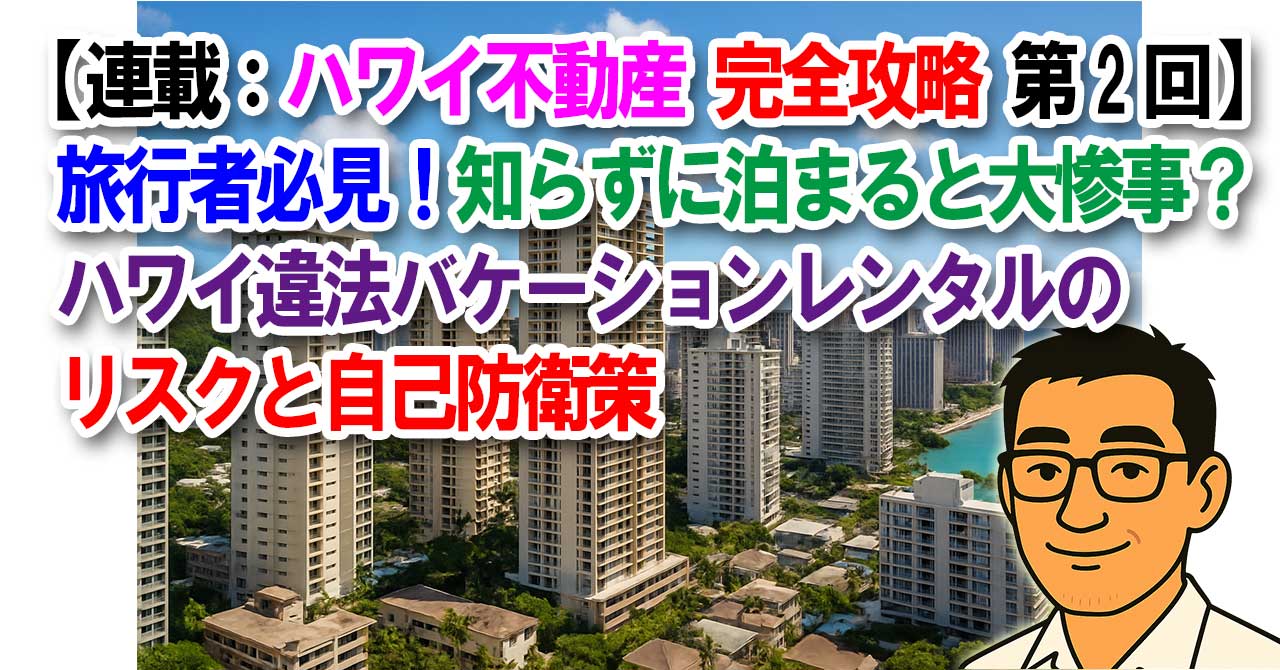 【連載:ハワイ不動産完全攻略 第2回】旅行者必見!知らずに泊まると大惨事?ハワイ違法バケーションレンタルのリスクと自己防衛策 2026.03.24 ハワイ情報 sasshi sasshi's Hawaii blog