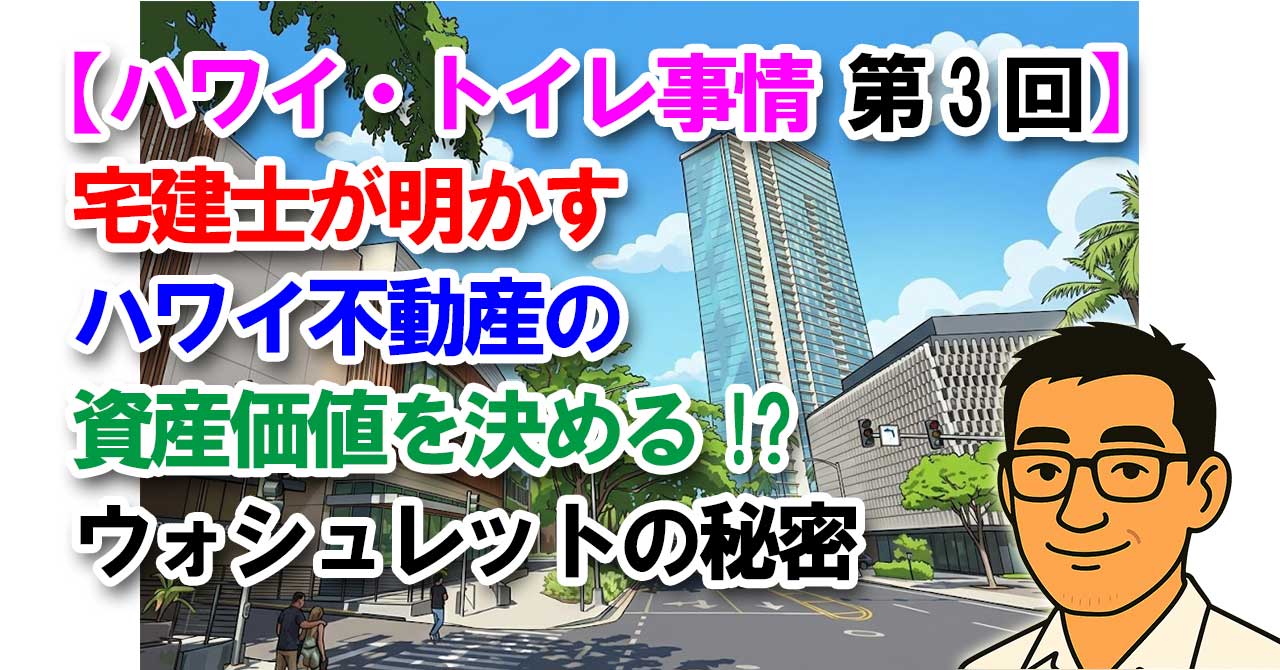 TAG 豆知識 【連載 第2回】ホテルはNG?ハワイ二拠点生活の住まい探しと滞在コストのリアル 2026.04.01 ハワイ情報 sasshi sasshi's Hawaii blog 【連載 第1回】ハワイ二拠点生活への第一歩!ESTAの罠と税金のリアル 2026.03.31 ハワイ情報 sasshi sasshi's Hawaii blog ハレクラニも?日本企業が支えるハワイの名門ホテル5選|安心の旅 2026.02.28 ハワイ情報 sasshi sasshi's Hawaii blog 【ハワイ・トイレ事情 第3回】宅建士が明かす!ハワイ不動産の資産価値を決めるウォシュレットの秘密 2026.02.26 ハワイ不動産 sasshi sasshi's Hawaii blog 【ハワイ・トイレ事情 第2回】旅行者必見のリスク管理!崩壊する公衆トイレと鉄道スカイラインの罠 2026.02.25 ハワイ情報 sasshi sasshi's Hawaii blog 【ハワイ・トイレ事情 第1回】旅行の快適度を左右する!最新ホテルとウォシュレット徹底調査 2026.02.24 ハワイ情報 sasshi sasshi's Hawaii blog